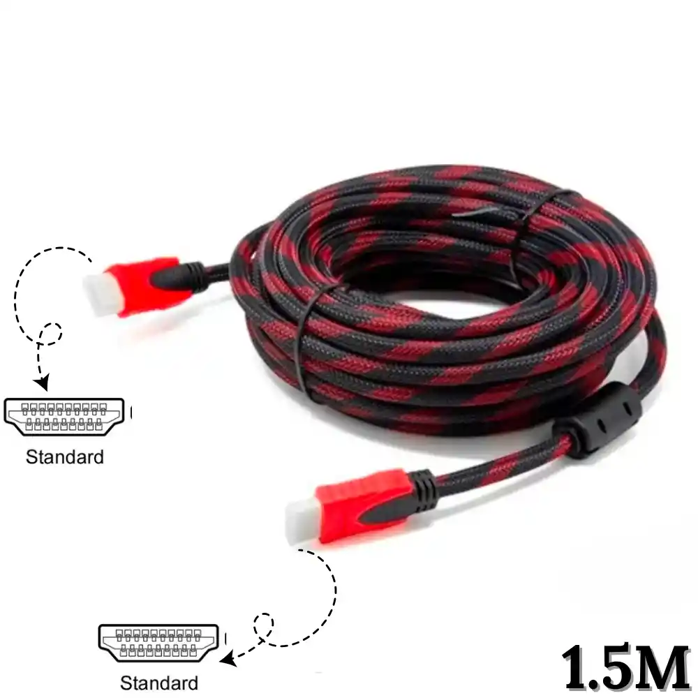 **Cable Hdmi 1.5 Metros **Longitud: 1.5 metros **Entrada: HDMI (macho) **Salida: HDMI (macho) **Producto Plug and Play **No necesita energía externa Cable de alta definición tipo A de alta calidad Conexión de equipos de audio/video que reproducen señal de alta definición TV’ LED o LCD y reproductores de DVD de alta definición. Cable de dos conectores macho estándar HDMI tipo A de 19 pines. Máxima transferencia de datos: 5 Gbps