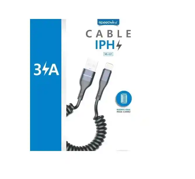 Cable Iphone Resortado Para Carro Carga Rapida SG431 MATERIAL: CORDON RESISTENTE COLOR: GRIS CABLE: LIGHTNUNG LONGITUD:1 METRO