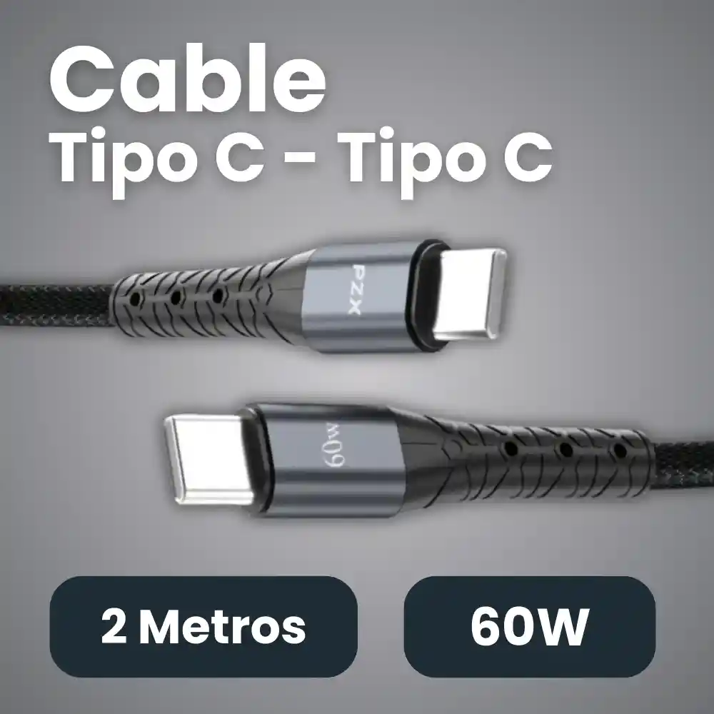 Cable Tipo C a Tipo C de 2 metros, reforzado y de carga rápida 60W. Ideal para cargar celulares, tablets y laptops compatibles con Power Delivery. Durable, resistente y rápido. ⚙️ Características principales: ✦ Carga rápida 60W (Power Delivery) ✦ Cable trenzado reforzado para mayor durabilidad ✦ Conectores metálicos PZX de alta resistencia ✦ Longitud extendida de 2 metros para mayor comodidad ✦ Transferencia de datos estable y segura ✦ Anti-enredos y flexible 📦 Incluye: ✦ 1 cable Tipo C – Tipo C PZX ✦ Empaque original del modelo V202G 📐 Especificaciones técnicas: ✦ Marca: PZX ✦ Modelo: V202G ✦ Tipo de conector: USB-C a USB-C ✦ Potencia soportada: Hasta 60W (PD Fast Charging) ✦ Longitud: 2 metros ✦ Material del cable: Trenzado premium anti-enredo ✦ Voltaje / corriente: 5V–20V / hasta 3A aprox. ✦ Compatibilidad: Android, tablets, iPad con USB-C, power banks, laptops con USB-C (según potencia requerida) ✦ Uso: Carga + transferencia de datos 💡 Ideal para: ✦ Usuarios que necesitan carga rápida en celulares y tablets ✦ Conectar laptops USB-C (hasta 60W) ✦ Personas que requieren un cable largo y resistente ✦ Uso diario en casa, oficina, vehículo o viajes