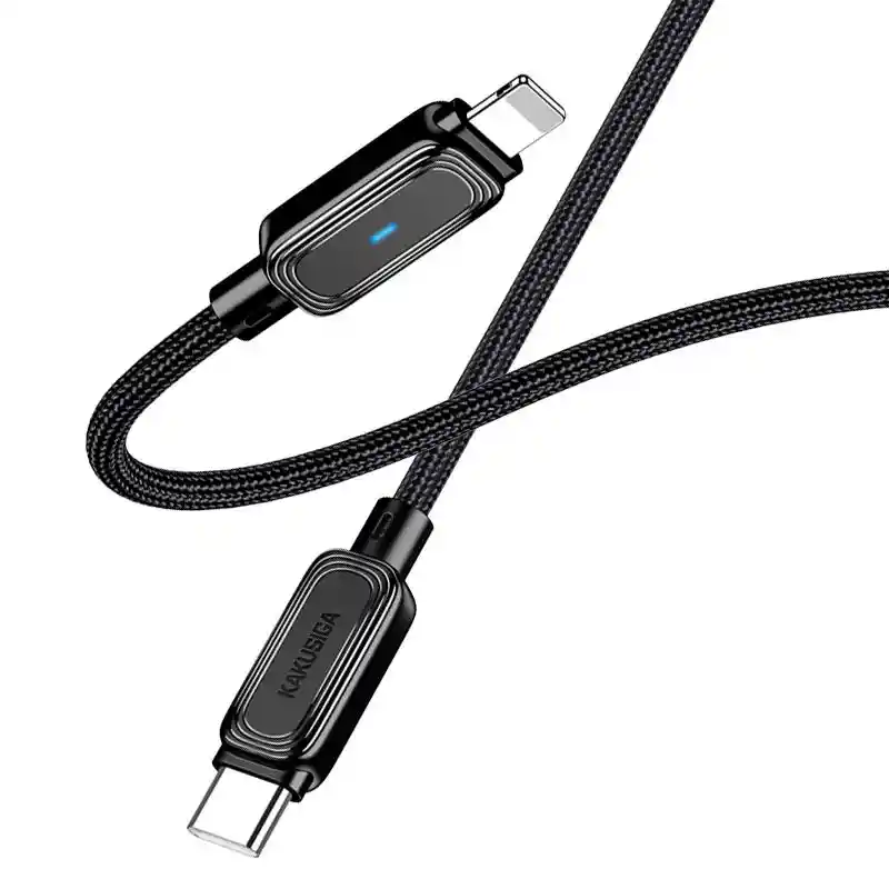 Longitud: 1,2 m Material: Cable trenzado resistente. Funciones: Apagado inteligente y transmisión de datos. Salida: Tipo-C a Lightning de 27 W. Chip inteligente: Protección contra sobrecarga