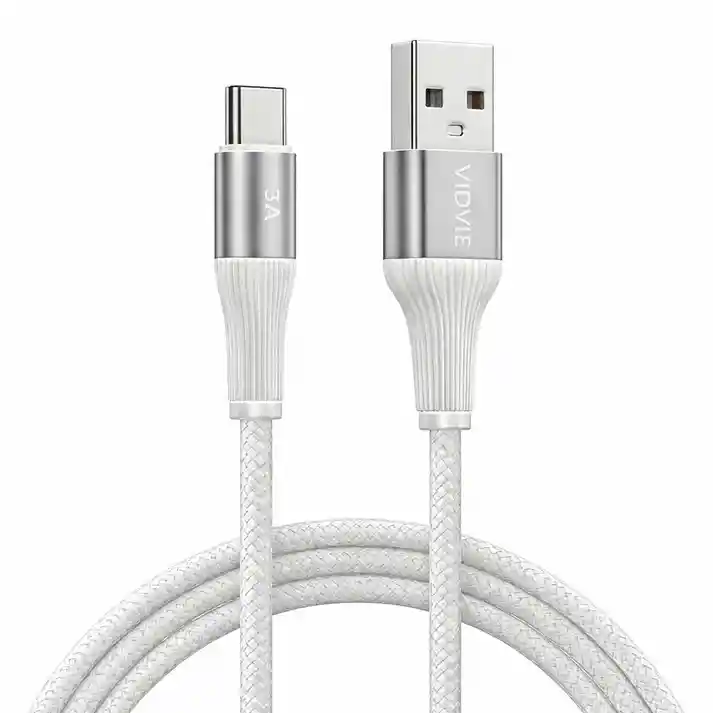 Cable USB Tipo C VIDVIE CB4038T 3A Carga Rápida Cable de datos y carga rápida con diseño trenzado resistente y conector reforzado en aluminio. Ideal para cargar y transferir datos de forma segura y estable en dispositivos con entrada USB-C. Características principales Modelo CB4038T Longitud 1 metro Salida 5V / 3A Conector USB Tipo C Material trenzado + carcasa de aluminio Color blanco Protección extra en terminales Soporta transmisión de datos Beneficios principales Carga rápida y estable hasta 3A Mayor durabilidad gracias al cable trenzado Resistente a dobleces y uso continuo Conectores reforzados para mayor vida útil Ideal para uso diario en casa, oficina o carro Material Alambre trenzado de alta resistencia Terminales con carcasa de aluminio Contenido del paquete 1 Cable USB Tipo C VIDVIE CB4038T Blanco Garantía Garantía de 30 días por defecto de fábrica