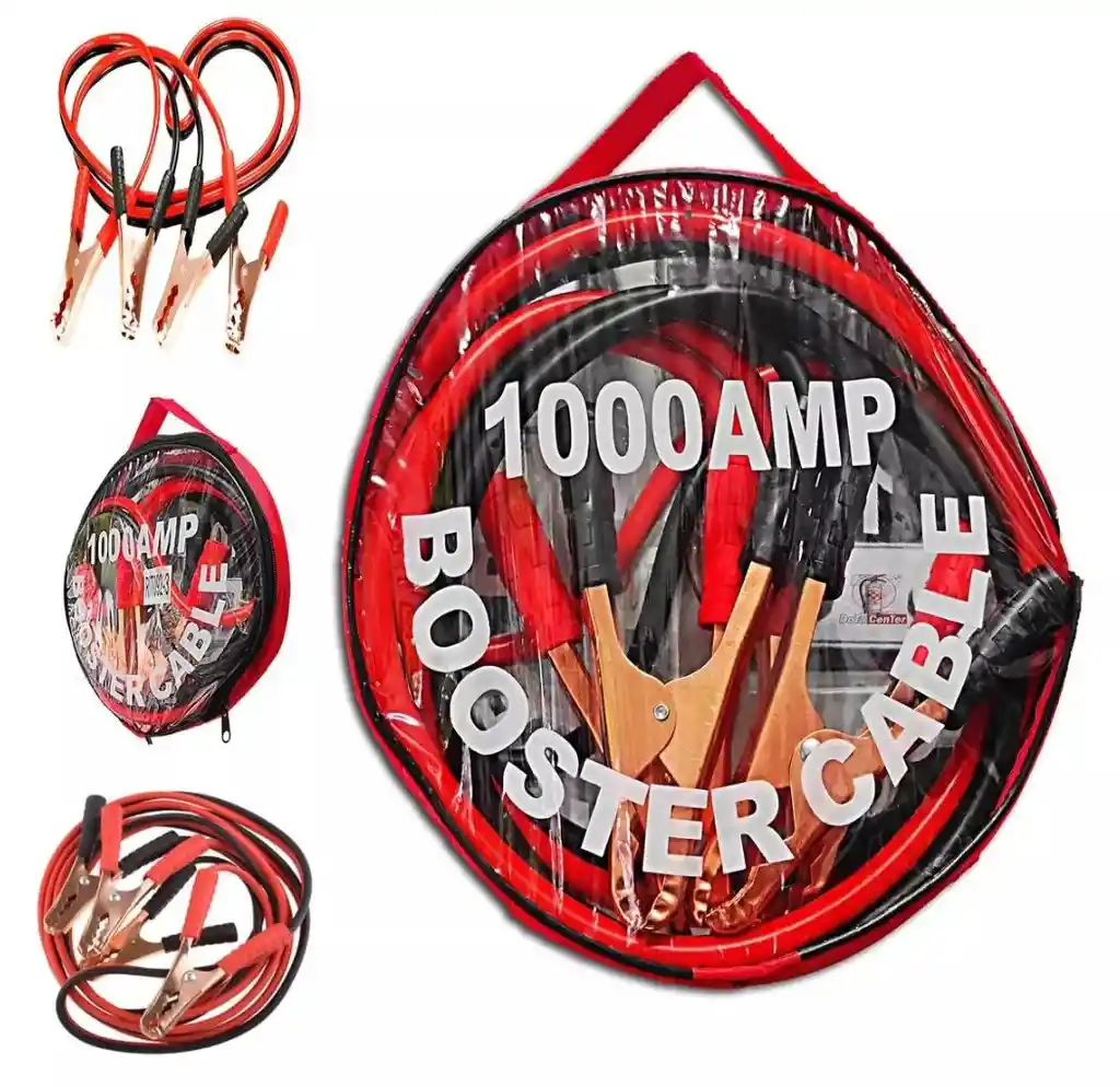 No te quedes a la mitad del camino sin saber qué hacer, lleva siempre una forma de reiniciar tu batería Cantidad: 1 Juego (un cable negro + un cable rojo) 1000 AMP amperios Durable Cable de alambre Longitud del Cable: 2 m 4 Pinzas Para baterías de 12-24V Color: negro y rojo Apto para autos, camionetas, motos, lanchas. CONTENIDO DEL PAQUETE: 1 cable de arranque estuche Se utiliza para recargar una batería muerta, haciendo un puente de positivos y negativos de un automóvil a otro, especial para vehículos muy pesados, de hasta 5000 cc Abrazadera de cable de alta resistencia, con doble construcción y dientes de cobre de agarre extra fuerte, El cable de refuerzo de la batería es ideal para tener en los automóviles en caso de emergencia. cable roba-corriente de 1000 amperios calibre 40, de 2 metros aproximadamente de largo. INCLUYE: ESTUCHE