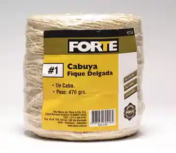 Fique (fibra vegetal) Biodegradable 100% natural, color natural, resistencia mínima a la tensión 35 Kgf, 141 metros, peso 470 gramos. Estructura un cabo, textura fuerza y resistencia. Utilizado en las artesanias, hogar y sector agropecuario. No hay un grado de toxicidad conocido por el uso de este producto, recomendamos la vigilancia cuando este sea utilzado por niños.