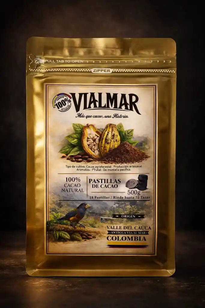 Las pastillas de cacao VIALMAR son la forma más práctica y tradicional de disfrutar el verdadero chocolate. Elaboradas con cacao 100% natural, sin azúcar ni aditivos, ofrecen un sabor intenso y auténtico, ideal para preparar bebidas calientes al estilo artesanal. Cada pastilla está diseñada para facilitar su uso y dosificación, manteniendo la esencia del cacao puro colombiano. Características: 100% cacao natural Presentación en pastillas (fácil preparación) Rinde múltiples tazas de chocolate Origen: Valle del Cauca, Colombia 🇨🇴 Sin azúcar, sin conservantes 👉 Perfecto para quienes buscan tradición, sabor y calidad en cada taza.