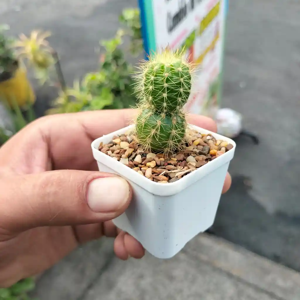 Crece con un cuerpo globoso que tiende a volverse cilíndrico, alcanzando una altura máxima de aproximadamente medio metro. La epidermis es de un hermoso color verde esmeralda brillante, con costillas longitudinales profundas. Las espinas son de un color amarillo claro agradable, muy finas y suaves.