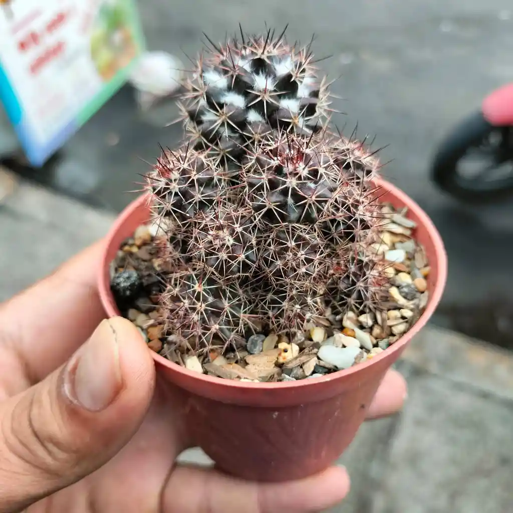 Cactus Mammillaria voburnensis p7 Origen y Hábitat: Es nativa de regiones de poca altitud (50-500 msnm) de Guatemala y México, específicamente en los estados de Chiapas y Oaxaca. Apariencia: Su superficie está cubierta de tubérculos con espinas. Presenta espinas radiales de color marfil con puntas oscuras y espinas centrales rectas y fuertes, de color marrón al principio. Floración: Produce pequeñas flores, que varían en color desde blanco amarillento con líneas marrones-rojizas, y a menudo forman un anillo alrededor de la parte superior del cactus. Ubicación y Luz: Se recomienda cultivarla en ambientes muy iluminados o a pleno sol, aunque se debe proteger del sol del mediodía en verano para evitar quemaduras.