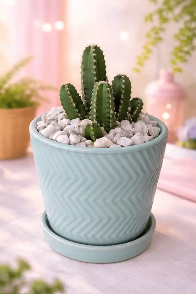 Cactus natural en elegante matera de cerámica 🌵 Perfecto para decorar o regalar. Fácil de cuidar y lleno de estilo. ¡Un detalle natural que encanta!