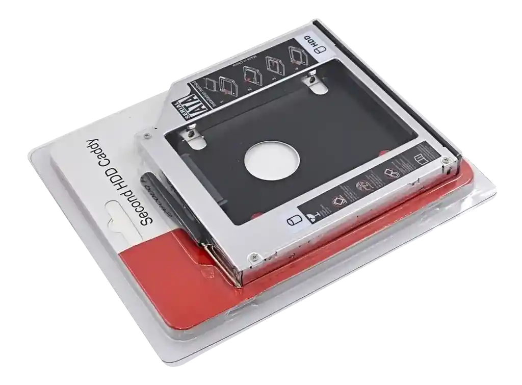 Caddy de 9.5mm diseñado para instalar un segundo disco duro o SSD en laptops que tienen bahía para unidad óptica (DVD). Permite ampliar el almacenamiento fácilmente reemplazando la lectora por este adaptador. Producto nuevo, resistente y compatible con la mayoría de equipos que usan 9.5mm. 🔍 Características principales Permite agregar un HDD o SSD adicional Compatible con bahías de 9.5mm Ideal para ampliar capacidad de almacenamiento Estructura resistente en aluminio/plástico Fácil instalación sin herramientas avanzadas Compatible con la mayoría de laptops que usen unidad óptica estándar 🔌 Especificaciones técnicas Tipo: Caddy para laptop Tamaño: 9.5mm Compatibilidad: HDD/SSD de 2.5" Estado: Nuevo ⚠️ Recomendaciones Verificar que tu laptop use unidad óptica de 9.5mm Instalar el disco con cuidado para evitar daño en conectores Configurar el BIOS si el equipo no detecta el disco automáticamente