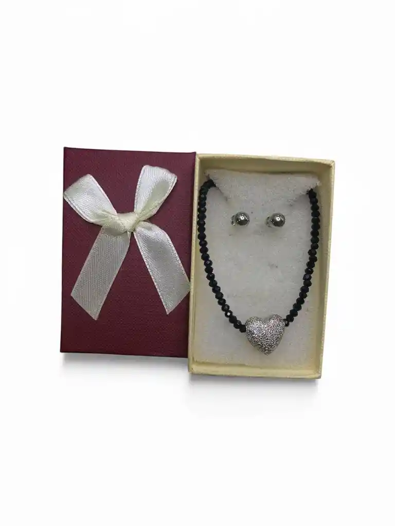 Cadena Con Aretes Tipo Topo Circular Con Dije De Corazon En Rodio