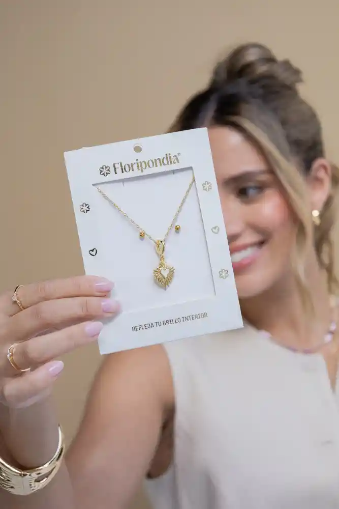Cadena en acero con baño en oro de 24k. Incluye: 1 cadena dorada corazon blanco como se ve en la foto. Incluye aretes tipo topos (aretes pequeños), el diseño del arete te llegará según disponibilidad. Recibe con tu compra una FLORIBAG gratis, para que guardes por separado tus accesorios. Hecho a mano en Colombia. * Las imágenes pueden estar ambientadas con otros productos que se venden por separado
