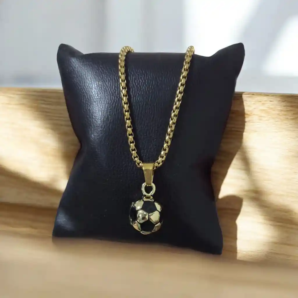 "La Cadena de Balón de Fútbol Dorada en acero es una pieza firme y elegante que sostiene un dije en forma de balón de fútbol. Su acabado dorado resalta la fuerza y el espíritu competitivo, simbolizando disciplina, esfuerzo y perseverancia. Esta pieza significativa es un recordatorio constante de que la verdadera victoria comienza con una confianza firme y un corazón seguro. “Bienaventurado el hombre que confía en el Señor, y cuya confianza es el Señor.” — Jeremías 17:7"