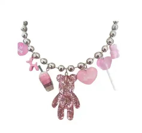 Collar de Charms Rosa – Edición Sweet Pop 💖 ¡Un accesorio que combina ternura, color y personalidad! ✨ Este collar está compuesta por cuentas metálicas plateadas y una colección de charms temáticos en tonos rosados que la convierten en una pieza única y adorable: 💘 Corazón tipo caramelo con la frase “BE MINE” 🎀 Lazo rosa 🥤 Bebida rosa con pitillo verde 🧸 Osito central con glitter rosa 💗 Corazón rosa sólido 🍬 Paleta redonda rosa 🐻 Osito gomita rosa Perfecta para regalar, coleccionar o complementar looks creativos. Su estilo pop y juguetón la hace ideal para vitrinas temáticas, contenido visual o detalles especiales. ✨ Diseño llamativo y lleno de encanto 🔗 Cierre cómodo y seguro 📸 Ideal para fotos, reels o colecciones personalizadas