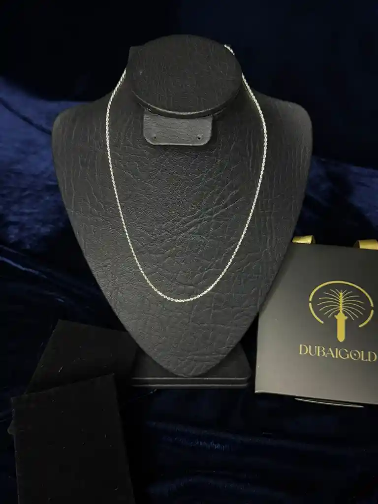 Cadena en plata de 45 centímetros tipo lazo Elaborado en Plata Italiana Ley 950 de altísima calidad, este accesorio combina elegancia, versatilidad y resistencia superior para acompañarte en cualquier ocasión. Su acabado pulido realza el brillo intenso y característico de la plata italiana, convirtiéndolo en una pieza atemporal que eleva tu estilo con sofisticación y distinción. Características: • Material: Plata Italiana Ley 950 genuina • Tejido: Lazo • Pureza superior (95% plata fina) • Acabado de alto brillo premium • Hipoalergénica • Ideal para uso diario o regalo especial • Diseño duradero y fácil de combinar Una pieza esencial que refleja calidad, elegancia y excelencia en cada detalle.