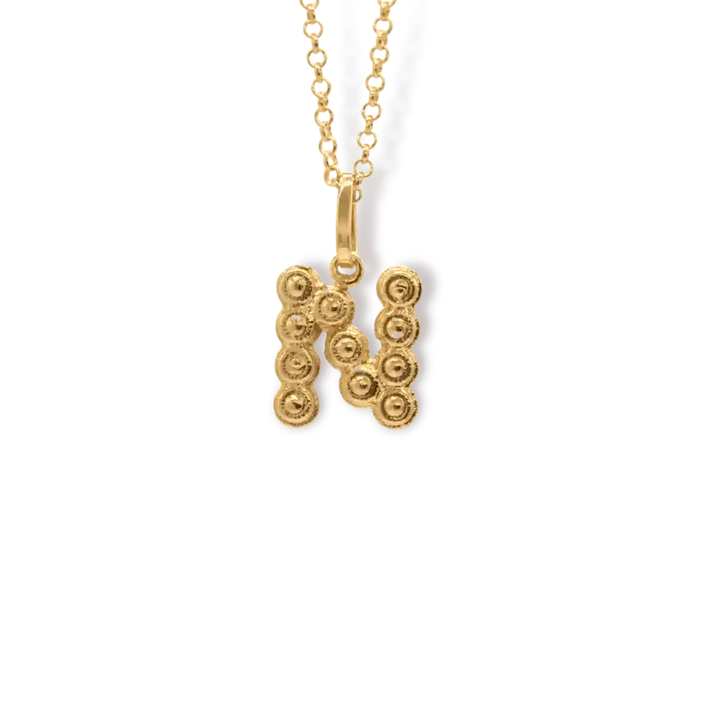 Esta pequeña pieza de joyería es el regalo perfecto para un ser querido o un amigo. La cadena puede usarse tanto en hombres como mujeres. Elaborada en bronce y oro de 24 kilates. La inicial es un accesorio divino para el día a día y funciona perfectamente como regalo para cualquier ocasión.