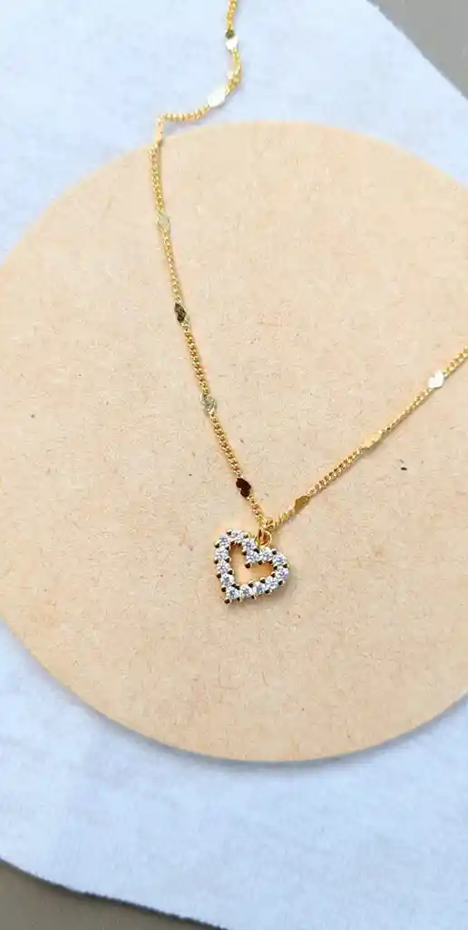 Cadena en baño de rodio con dije de corazón cubierto de micro circones blancos