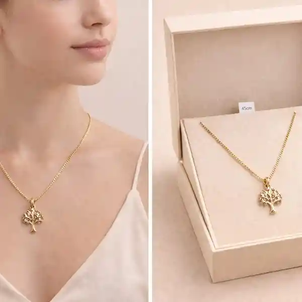CADENA Y DIJE ARBOL DE LA VIDA ORO LAMINADO: Cadena 50 cms largo, garantía de 3 años por cambio de color