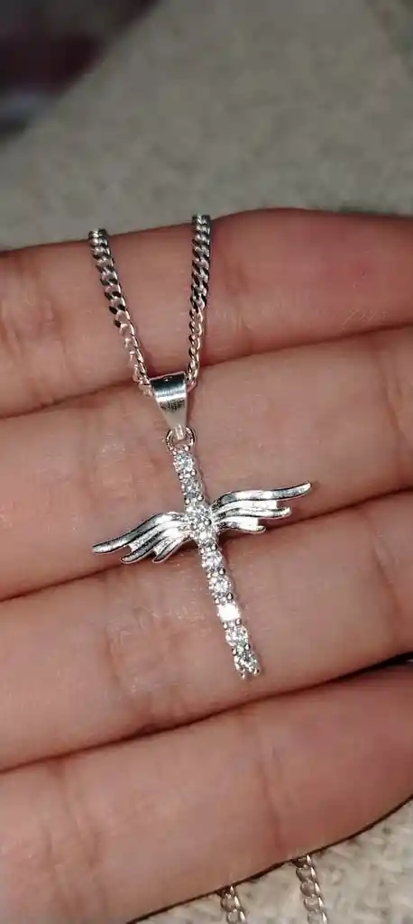 CADENA Y DIJE DE CRUZ CON ALAS, CADENA DE 50CMS DE LARGO La plata 925 ofrece beneficios como durabilidad, resistencia y un brillo atractivo, ideal para joyería de uso diario. Es hipoalergénica, lo que la hace segura para pieles sensibles. Además, su versatilidad permite una gran variedad de diseños y su mantenimiento es relativamente fácil.