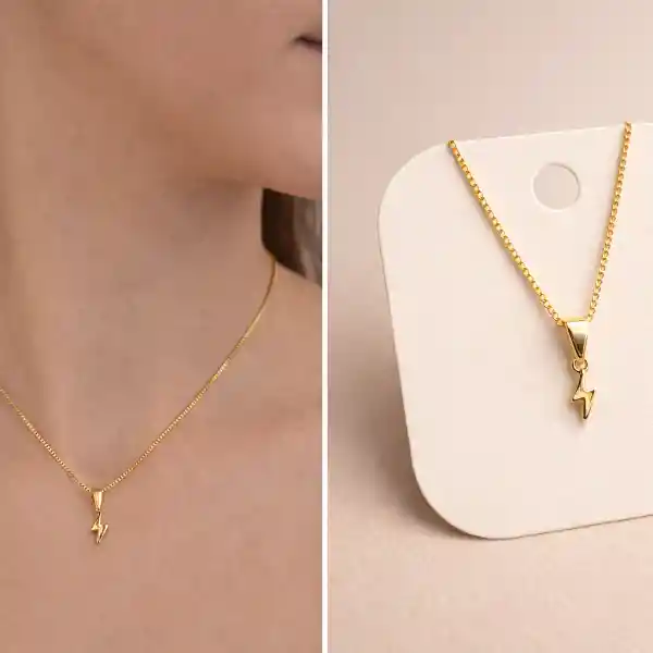 CADENA Y DIJE EN ORO LAMINADO RAYO: CADENA LARGO 45 CMS, DIJE LARGO 0,8CMS, GARANTÍA 3 AÑOS POR CAMBIO DE COLOR, COLOR DORADO