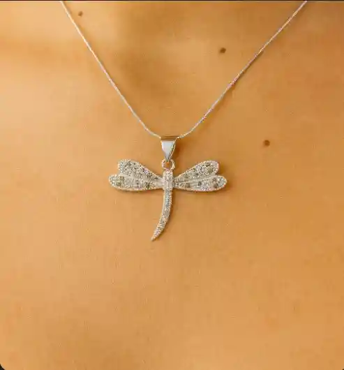 CADENA Y DIJE LIBELULA CIRCONES DE COLORES PLATA 925