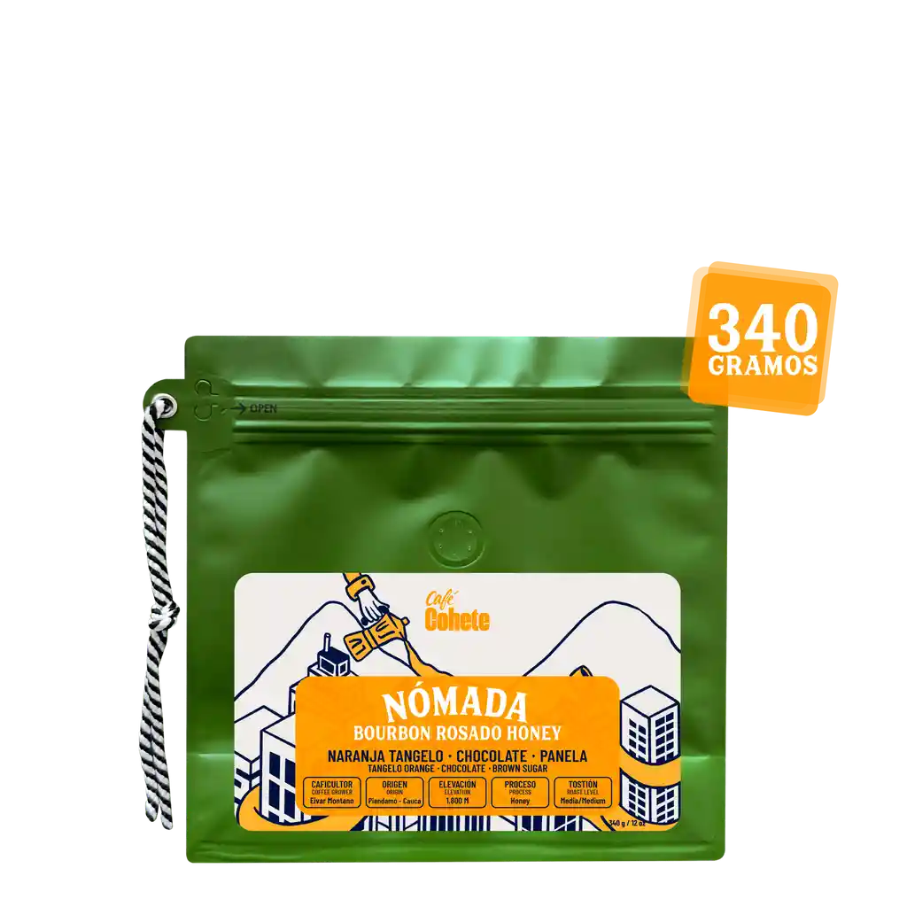 Nuestro café especial de temporada Bourbon Rosado Honey (Nómada) tiene deliciosas notas a naranja tangelo, chocolate y panela. DESCRIPCIÓN DEL CAFÉ NÓMADA Caficultor: Eivar Montaño. Origen: Piendamó, Cauca. Variedad: Bourbon Rosado. Proceso: Honey. Altitud: 1.800 M.S.N.M. Perfil de taza: Naranja tangelo, chocolate y panela. Cuerpo: Medio sedoso. Acidez: Málica (Fruta madura). Tostión: Media. Notificación sanitaria: NSA-0013394-2023.