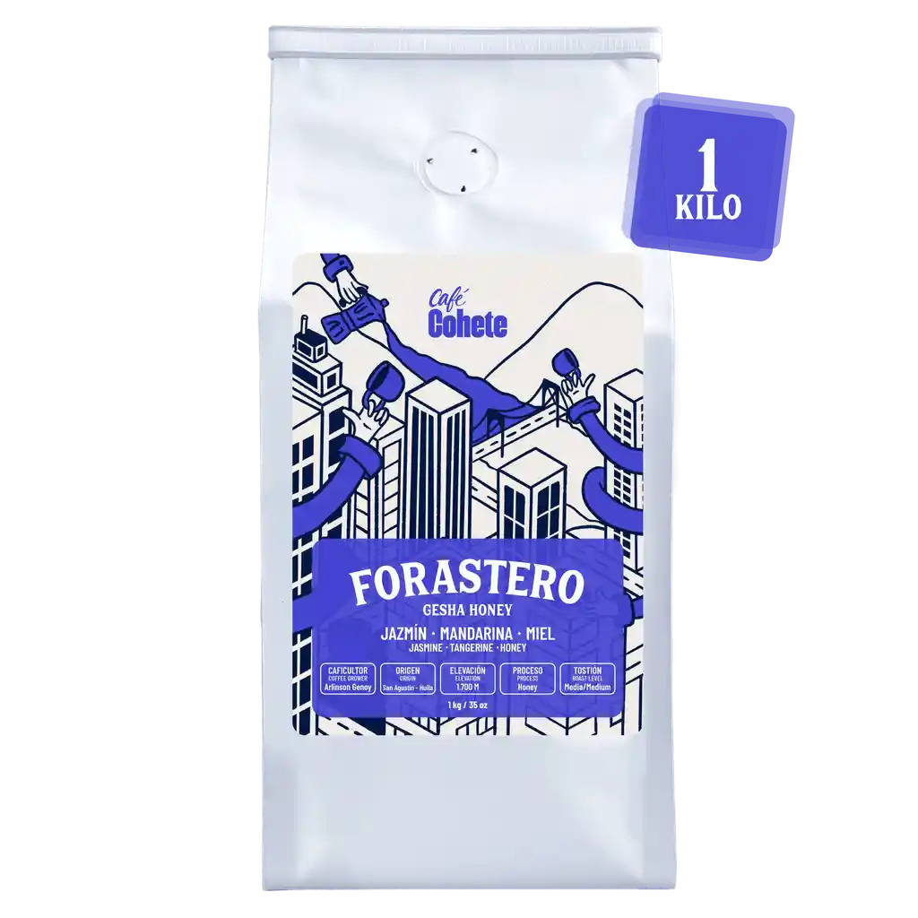 Nuestro café especial de temporada Gesha Honey (Forastero) tiene deliciosas notas a jazmín, mandarina y miel. DESCRIPCIÓN DEL CAFÉ FORASTERO Caficultora: Arlinson Genoy. Origen: San Agustín, Huila. Variedad: Gesha. Proceso: Honey. Fermentación: 48 horas. Altitud: 1.700 m.s.n.m. Perfil de taza: Jazmín, mandarina y miel. Cuerpo: Ligero. Acidez: Cítrica. Tostión: Media. Notificación sanitaria: NSA-0013394-2023.