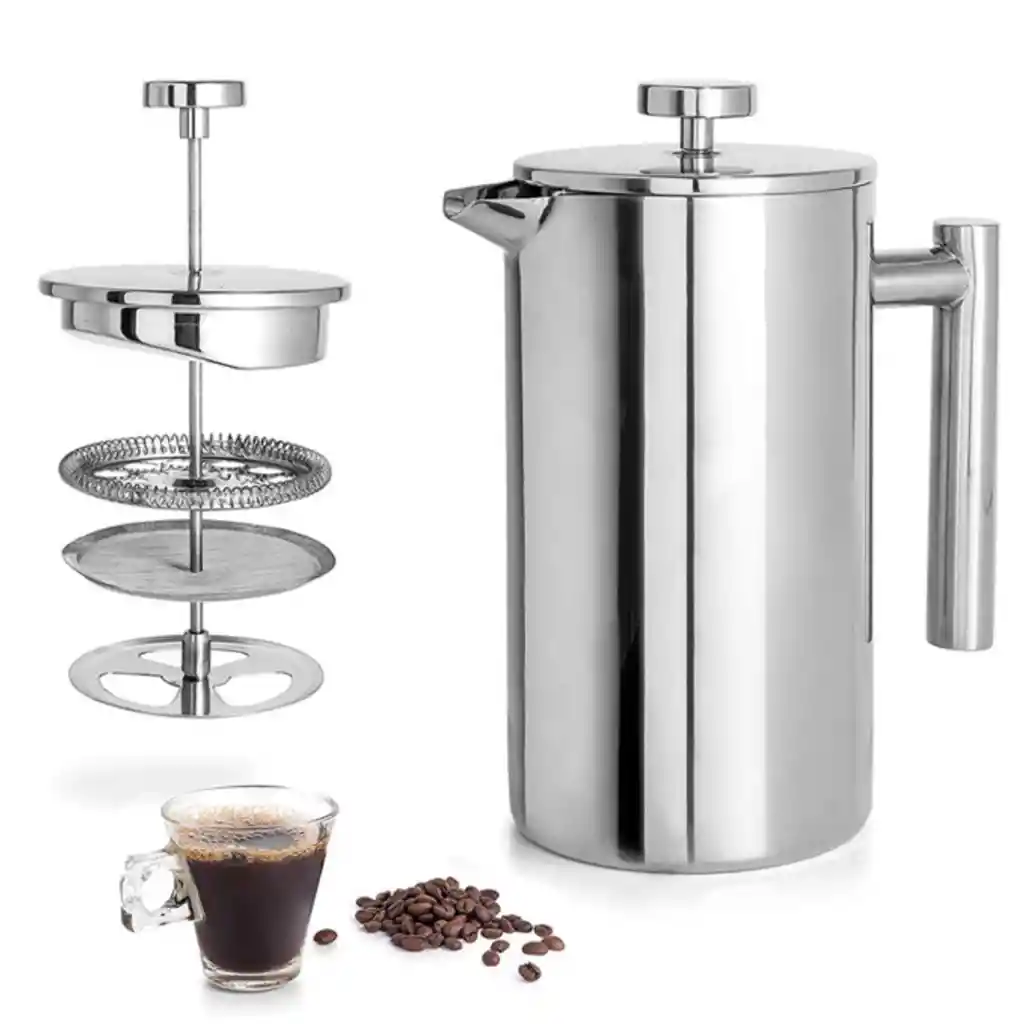 Prensa francesa fabricada en acero inoxidable de alta calidad, ideal para preparar café con sabor intenso y aroma natural. También es ideal para preparar tés o aromáticas. Su sistema de filtrado de malla fina permite extraer los aceites esenciales del café sin dejar residuos, logrando una bebida más pura y equilibrada. Cuenta con tapa y émbolo resistentes, pico vertedor antiderrames y mango ergonómico que facilita un agarre cómodo y seguro. Es duradera, fácil de limpiar y perfecta para uso diario en el hogar u oficina. Medidas: Alto 16 cm, Ancho 8 cm x 8 cm