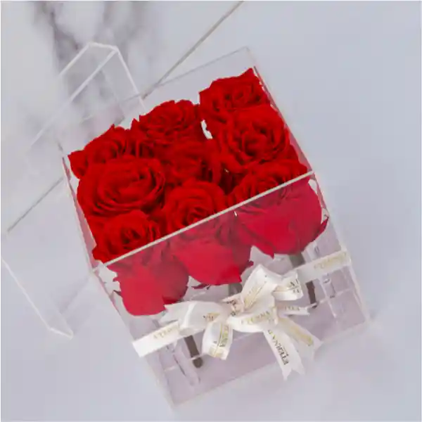 Exclusivo arreglo de rosas preservadas diseñado para quienes buscan un arreglo sofisticado y duradero. Presentado en una caja acrílica transparente, resalta la belleza natural de cada rosa, conservada mediante un proceso especial que permite mantener su frescura y color por años, sin necesidad de agua ni cuidados adicionales.