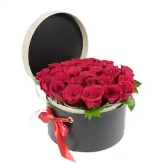 Caja redonda con aprox. 20 rosas rojas y 5 varas de rusco.La flor puede ser sustituida dependiendo la disponibilidad de color y del producto “Mensaje Personalizado” máximo de 30 caracteres (Dejar el mensaje en el chat, los comentarios no se previsualizan para la tienda por lo que si se dejan allí no podrá ser incluido)