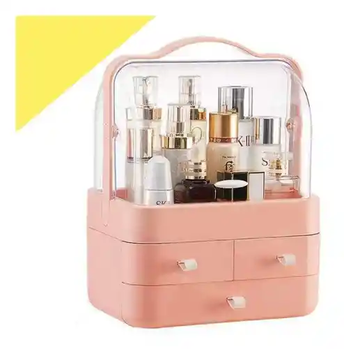 COLOR ROSA Preciosa caja cosmetiquera con un diseño elegante y moderno, que mantendrá tus pertenencias protegidas. Por lo mismo, es practico y perfecto para colocarlo en tu habitación o baño sin miedo a que las cosas se mojen o deterioren por el polvo. Es multifuncional y su capacidad te permitirá llevar contigo gran parte de tus cosméticos en diferentes formas, tamaños y mantenerlos organizados todo al mismo tiempo. Sus tres espacios divididos y protegidos por la tapa en acrílico transparente te harán aún más fácil la tarea de encontrar los pequeños o grandes objetos que quieras guardar y a su vez protegerlos del polvo o agua. Sus compartimentos en la parte inferior es del tamaño ideal para tener un fácil acceso a tus joyas u otros objetos. Características principales: Cubierta superior transparente que evita que los cosméticos y el maquillaje se expongan al polvo o al agua. Diseño elegante y portátil Gran capacidad de almacenamiento Elementos incluidos: Cosmetiquera
