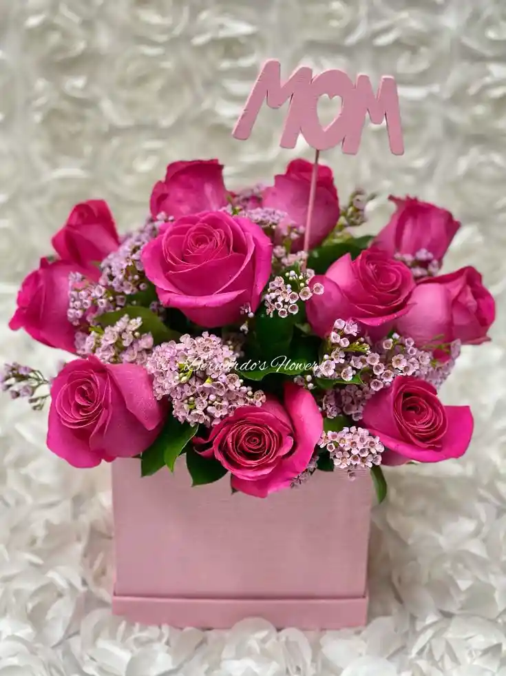 Una sofisticada caja con 12 rosas fucsias de tonos vibrantes, perfecta para expresar admiración y cariño en cualquier ocasión especial. Nota: La flor puede ser sustituida dependiendo de la disponibilidad de color y del producto. "Mensaje Personalizado" máximo de 30 caracteres (Dejar el mensaje en el chat, los comentarios no se previsualizan para la tienda, por lo que si se dejan allí no podrá ser incluido).