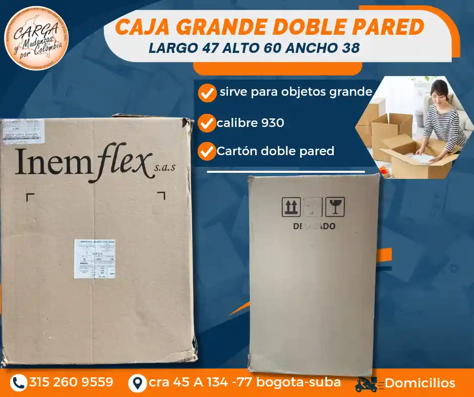 Las cajas de cartón en embalaje sirven para proteger los productos durante el transporte y almacenamiento, garantizando que lleguen en buen estado a su destino final. ✅ Su ligereza disminuye los costos de envío y facilita la manipulación. ✅ Protege de posibles daños a su contenido por las vibraciones en medio del transporte. ✅ Permiten una clasificación y organización eficiente de los productos, especialmente en el caso de las mudanzas. Medidas: 48 largo x 39ancho x 60 alto Alta Calidad - Producto Garantizado. Visítanos: Cr. 45a # 134 - 77 Local Esquina Contáctanos: 315 2609 559 *ASESORIA SIN COSTO POR WHATSAAP*