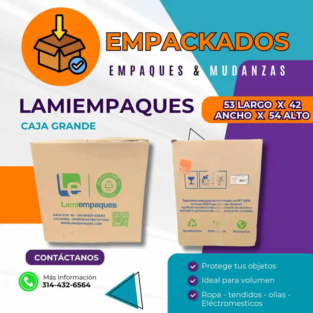 Caja de Cartón Grande para Mudanza – Gruesa, Reforzada, Limpia ✅ Ideal para Empaque, Embalaje y Almacenamiento en Mudanzas o Trasteos. 📦 Cartón de un solo uso: limpia y en perfecto estado 📏 Medidas: 53x42x54 cm (Tamaño estándar para volumen). 💪 Resistente para objetos pesados, vajillas, libros, objetos de tocador o delicados. 🛡️ Caja tipo aletas, fácil de armar y sellar con cinta adhesiva. ➡️ Calidad garantizada – Listas para entrega inmediata. ➡️ Envíos rápidos. 📲 Contáctanos ahora por WhatsApp: 3144326564 Busca: cajas para mudanza, cajas embalaje, cajas grandes para trasteo, empaque resistente, cajas para ropa, cajas para platos, cajas para zapatos.