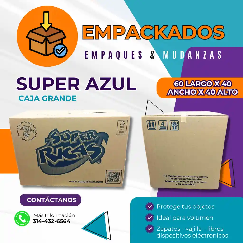 Caja De Cartón Grande Super Azul 60x40x40 - Empaques Para Mudanzas