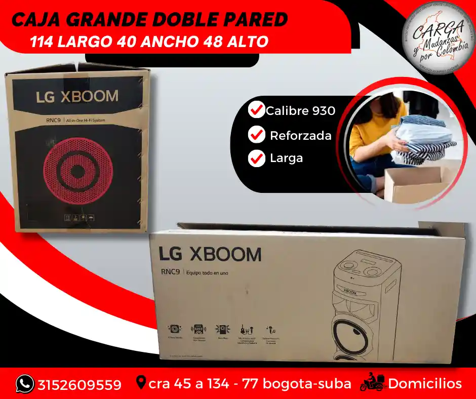 Las cajas de cartón en embalaje sirven para proteger los productos durante el transporte y almacenamiento, garantizando que lleguen en buen estado a su destino final. - Su ligereza disminuye los costos de envío y facilita la manipulación. - Protege de posibles daños a su contenido por las vibraciones en medio del transporte. - Permiten una clasificación y organización eficiente de los productos, especialmente en el caso de las mudanzas. Medidas: 114 Largo x 40 ancho x 48 alto Visítanos: Cr. 45a # 134 - 77 Local Esquina Contáctanos: 315 2609 559 *ASESORIA SIN COSTO POR WHATSAAP*