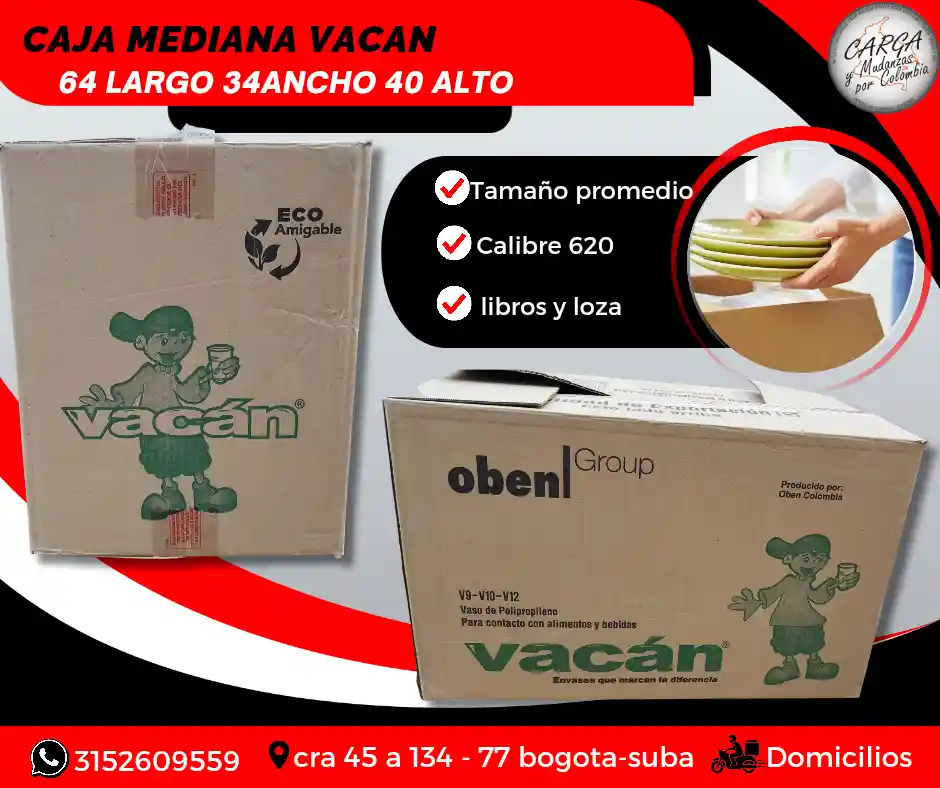 Las cajas de cartón en embalaje sirven para proteger los productos durante el transporte y almacenamiento, garantizando que lleguen en buen estado a su destino final. - Su ligereza disminuye los costos de envío y facilita la manipulación. - Protege de posibles daños a su contenido por las vibraciones en medio del transporte. - Permiten una clasificación y organización eficiente de los productos, especialmente en el caso de las mudanzas. Medidas: 64 largo x 34 ncho x 40 alto Alta Calidad - Producto Garantizado. Visítanos: Cr. 45a # 134 - 77 Local Esquina Contáctanos: 315 2609 559 *ASESORIA SIN COSTO POR WHATSAAP*
