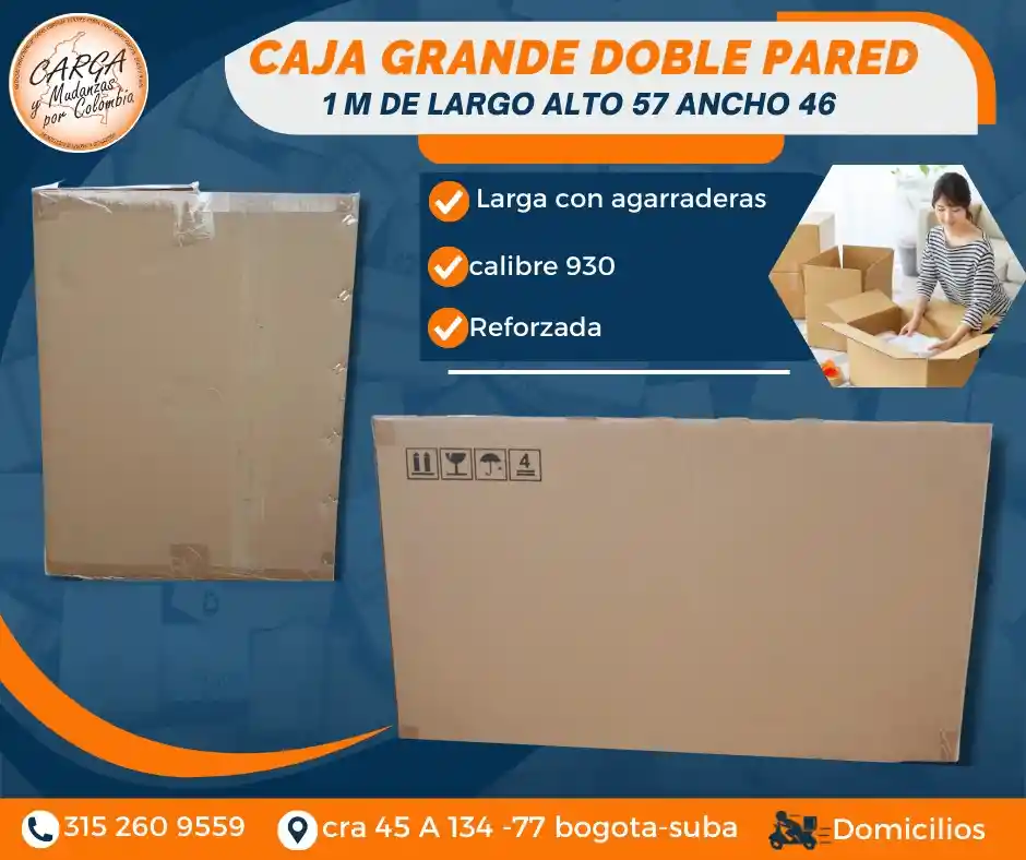 caja doble pared sin marca resistente Medidas: 1 m largo x 46 ancho x 57 alto Alta Calidad - Producto Garantizado. Visítanos: Cr. 45a # 134 - 77 Local Esquina Contáctanos: 315 2609 559 *ASESORIA SIN COSTO POR WHATSAAP*