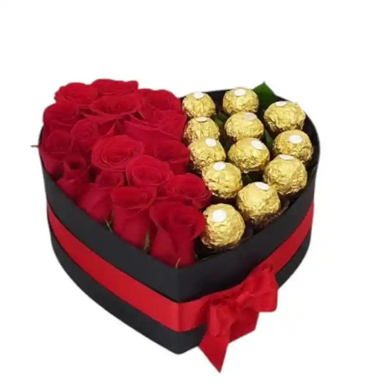 Un Detalle Unico - Espectacular Caja de Corazón con Rosas Rojas y Chocolates, Cinta con Moño. Si requiere tarjeta, incluir mensaje en el chat.