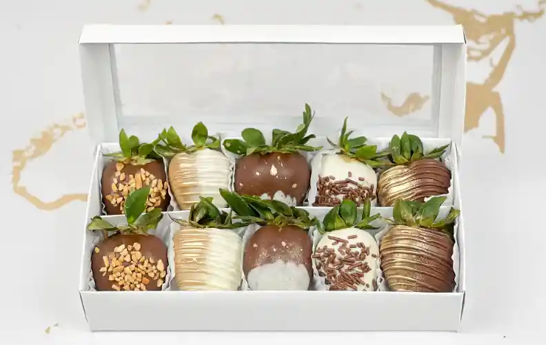 Para todos los amantes del chocolate, esta cajita es una opción perfecta. Cuenta con gran variedad de chocolates y una hermosa decoración. Sorprende a tus seres queridos con lo mejor. Contenido: 1 Caja Chocolatera Decorada con moños. 5 Fresas Cubiertas de Chocolates y Grajeas. Presentación: Empaque en caja blanca a la medida, con visor de acetato.