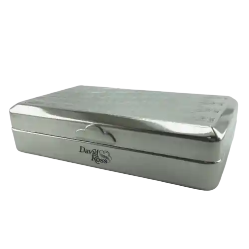 Caja Metálica para tabaco - David Ross Producto europeo, fabricado en el Reino Unido. Disfruta del Arte de Fumar de la manera más segura. Fabrica tu propio cigarrillo con el mejor papel importado de Europa. Y las más novedosas máquinas de relleno. Características: Alto: 3 cm Ancho: 5.5 cm Largo: 10 cm ¡Pregunta por nuestros precios al Mayor! ¡David Ross, tu mejor accesorio!