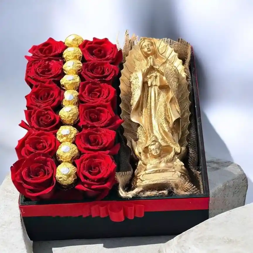 Contiene Una caja de lujo 12 rosas Rojas 9 chocolates virgen dorada decoración tarjeta personalizada