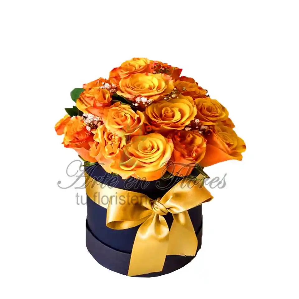 Este arreglo esta elaborado con: 24 Rosas ( El color de la rosa puede variar) Perla Follaje verde Caja redonda ( El color de las cajas pueden variar Negra o Blanca) Moño Decoración
