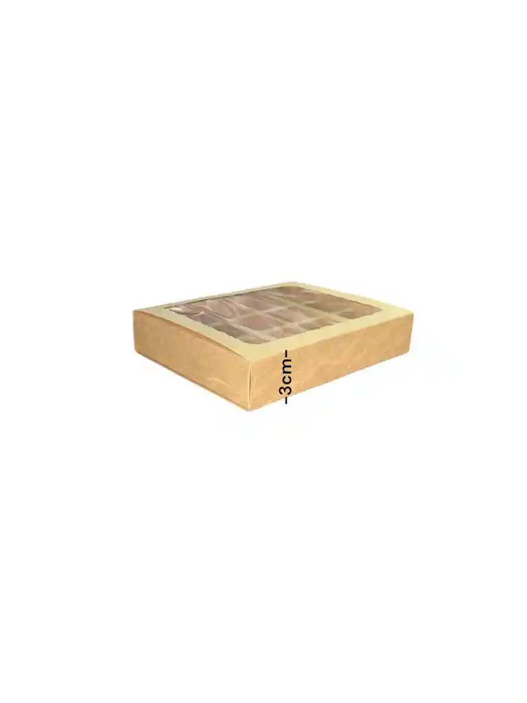CAJA EN CARTON CARTULINA 17X14X3CM CON DIVISIONES REMOBIBLES EN KRAFT CON VENTANA TIPO FUNDA