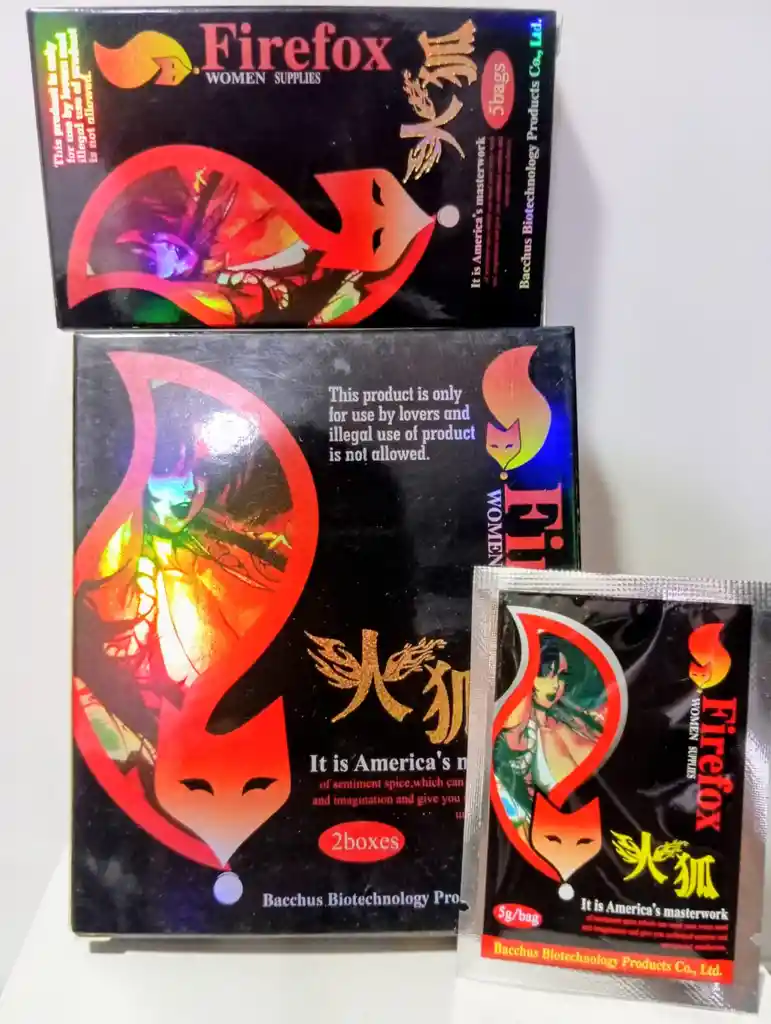 Caja x10 unidades Firefox Firefox Potenciador Sexual Femenino Es un producto especializado para incrementar en la mujer su disposición al acto sexual. Es un polvo cristalino sin color ni sabor, que se disuelve fácil y rápidamente en cualquier bebida; fría ó caliente, con alcohol ó sin alcohol, inclusive en agua pura. Su uso en muy efectivo en excitar a una mujer de manera rápida ya que Estimula la circulación sanguínea para lograr la contracción de la vagina aumentando la lubricación y el deseo de ser penetrada. Sus ingredientes actúan en diferentes zonas erógenas de la mujer como los pezones que se eréctan y los senos se hacen más firmes momentáneamente, aumenta su frecuencia respiratoria, el clítoris se expande junto con los labios vaginales. El placer que permite FireFox a la mujer es querer sentir el miembro masculino. Sus ingredientes como la damiana -una de las plantas afrodisíacas más potentes que existen- es efectiva para la motivación sexual femenina ya que su principal característica es generar calor y palpitaciones dentro de la vagina que generan el apetito sexual de la mujer. Ingredientes: L-arginlne, Aloe Vera, damiana, extractos de kly.firefox polvo para exitar mujeres. Indicaciones: Disolver el contenido de un sobre en un vaso con la be bida deseada y unos minutos después sus ingredientes harán efecto volviendo a la mujer una llama de fuego