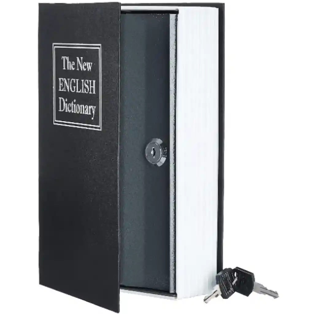 Diseño discreto: El exterior imita un libro real para ocultar objetos de valor. Material: Generalmente construida en metal resistente por dentro. Seguridad: Incluye un sistema de cierre con llave para proteger el contenido. Uso: Ideal para guardar dinero, documentos u objetos pequeños de valor.