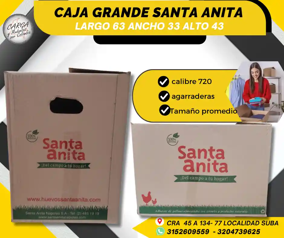 Las cajas de cartón en embalaje sirven para proteger los productos durante el transporte y almacenamiento, garantizando que lleguen en buen estado a su destino final. - Su ligereza disminuye los costos de envío y facilita la manipulación. - Protege de posibles daños a su contenido por las vibraciones en medio del transporte. - Permiten una clasificación y organización eficiente de los productos, especialmente en el caso de las mudanzas. Medidas: 63 largo x 33 ancho x 43 alto TIENE AGARRADERAS Alta Calidad - Producto Garantizado. Visítanos: Cr. 45a # 134 - 77 Local Esquina Contáctanos: 315 2609 559 *ASESORIA SIN COSTO POR WHATSAA