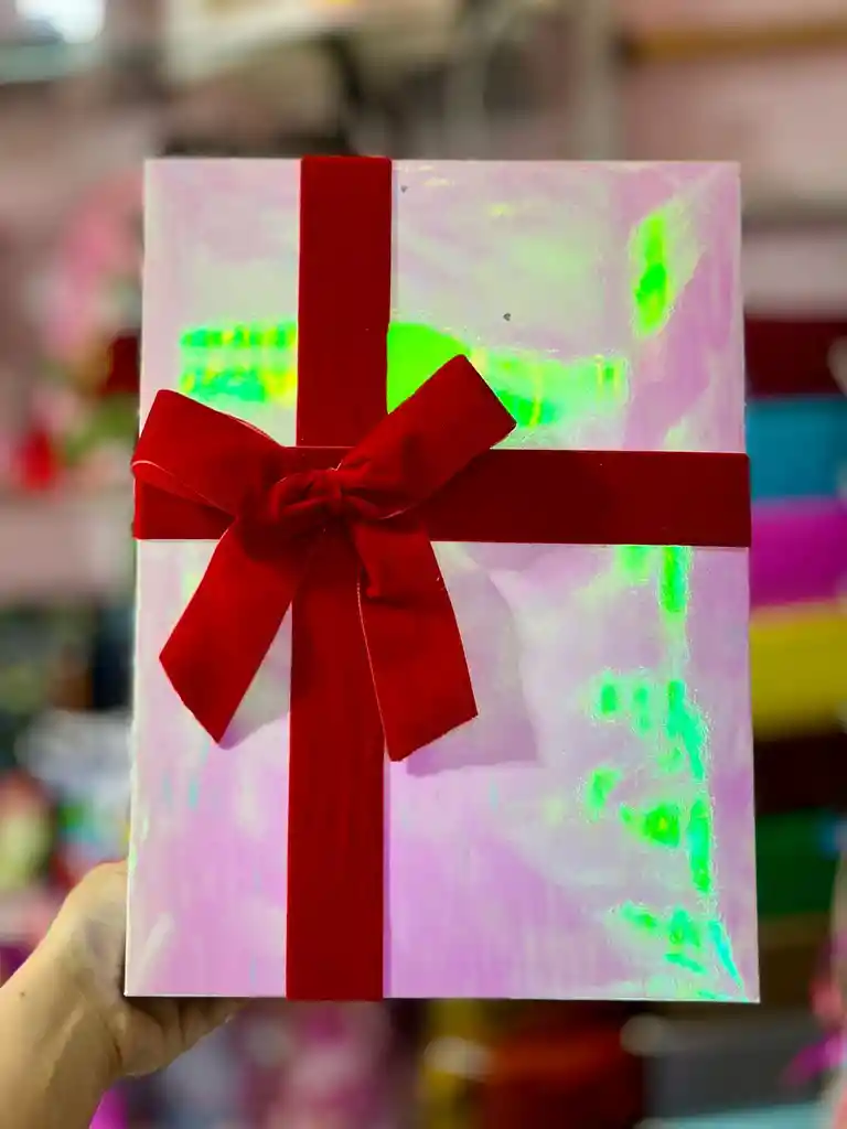 CAJA GRANDE TORNASOL DECORADA CON CINTA DE TERCIOPELO MEDIDAS: 25X34 CM