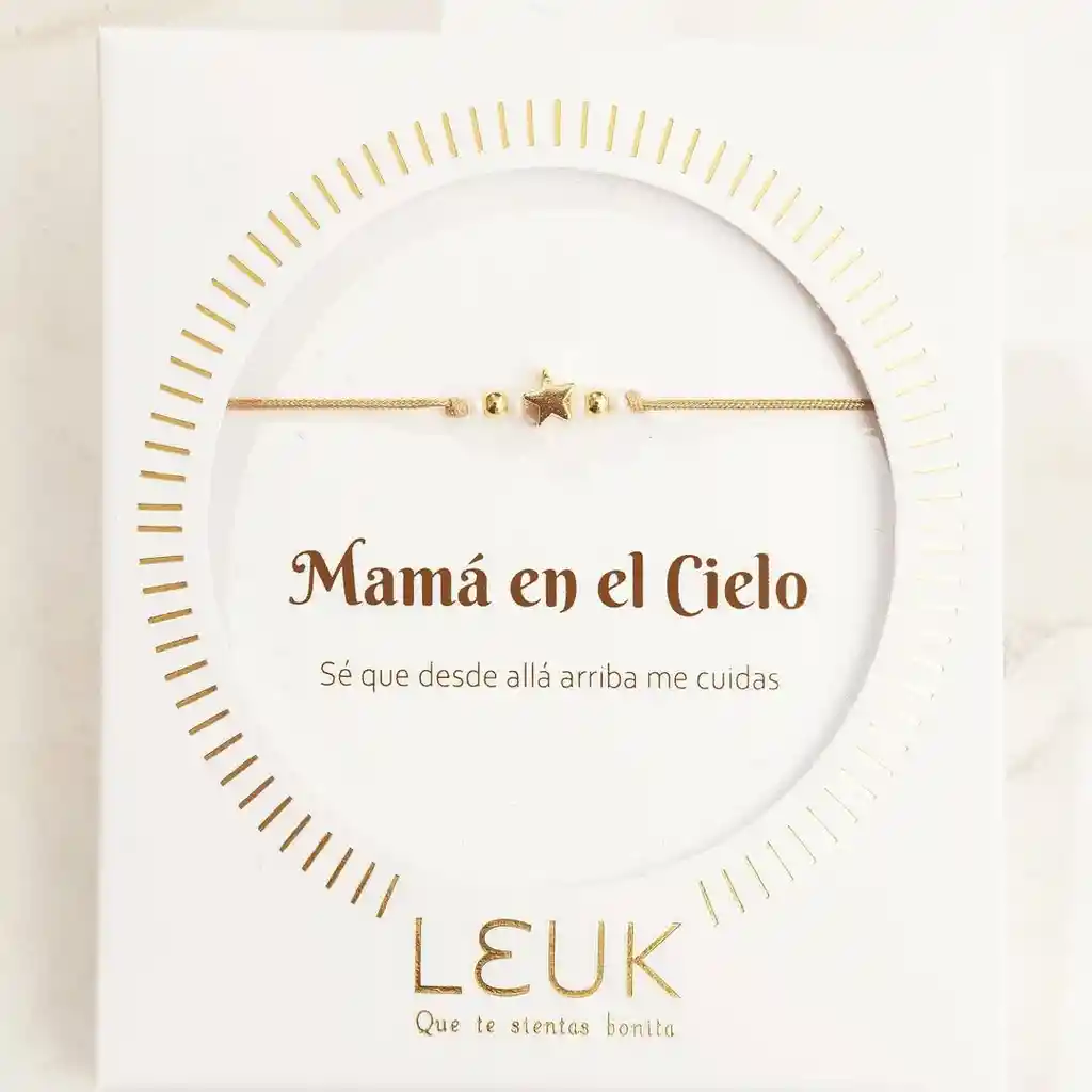 Manilla de hilo ajustable con dije en latón con baño de oro, presentada en caja intencionada “Mamá en el Cielo”. Un accesorio simbólico creado para honrar y recordar con amor a mamá. Ideal como detalle conmemorativo para llevar cerca del corazón y sentir conexión, fuerza y consuelo. Un regalo significativo para acompañar procesos de memoria y homenaje. ✔ Manilla ajustable ✔ Dije en latón con baño de oro ✔ Recuerdo simbólico con significado ✔ Ideal como detalle conmemorativo ✔ Accesorio delicado y especial Incluye caja con nombre intencionado. Talla única ajustable.