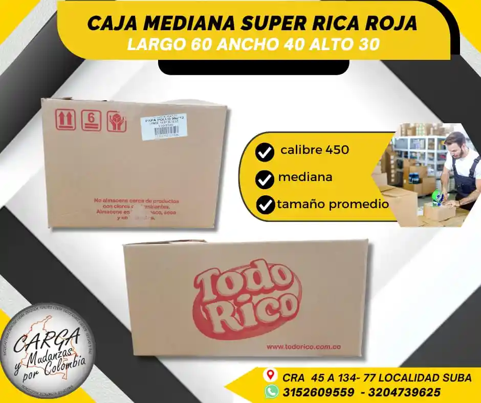 Las cajas de cartón en embalaje sirven para proteger los productos durante el transporte y almacenamiento, garantizando que lleguen en buen estado a su destino final. ✅ Su ligereza disminuye los costos de envío y facilita la manipulación. ✅ Protege de posibles daños a su contenido por las vibraciones en medio del transporte. ✅ Permiten una clasificación y organización eficiente de los productos, especialmente en el caso de las mudanzas. Medidas: 60 cm largo x 40 ancho x 30 alto Alta Calidad - Producto Garantizado. Visítanos: Cr. 45a # 134 - 77 Local Esquina Contáctanos: 315 2609 559 *ASESORIA SIN COSTO POR WHATSAAP*