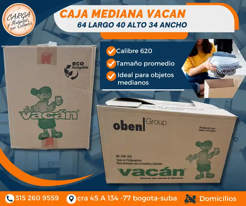 Las cajas de cartón en embalaje sirven para proteger los productos durante el transporte y almacenamiento, garantizando que lleguen en buen estado a su destino final. ✅ Su ligereza disminuye los costos de envío y facilita la manipulación. ✅ Protege de posibles daños a su contenido por las vibraciones en medio del transporte. ✅ Permiten una clasificación y organización eficiente de los productos, especialmente en el caso de las mudanzas. Medidas: 64 largo x 40 ancho x 34 alto Alta Calidad - Producto Garantizado. Visítanos: Cr. 45a # 134 - 77 Local Esquina Contáctanos: 315 2609 559 *ASESORIA SIN COSTO POR WHATSAAP*