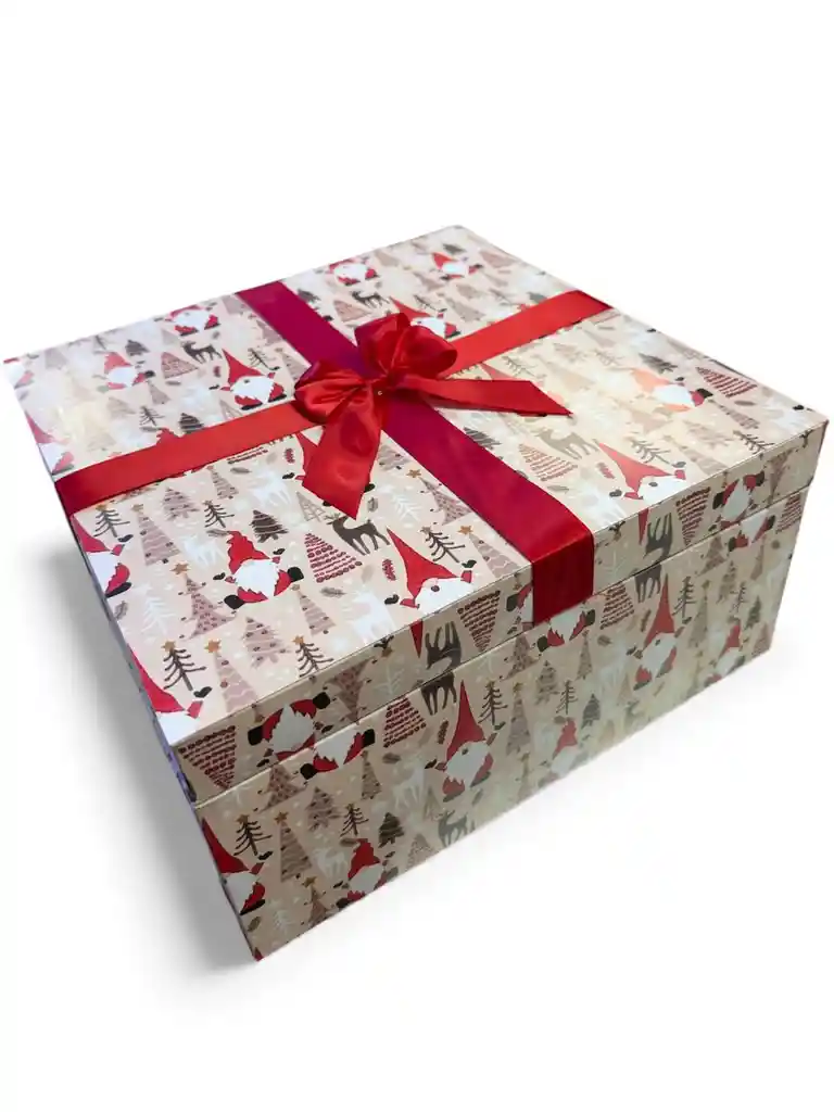 CAJA NAVIDEÑA 25X25 MOÑO ROJO